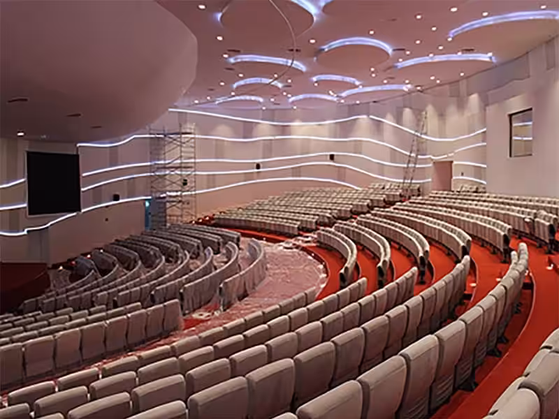 Sporthalle mit 540 m², ein Theater mit 1000 Sitzplätzen und Laborräume für